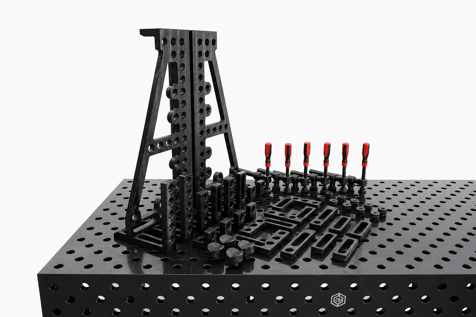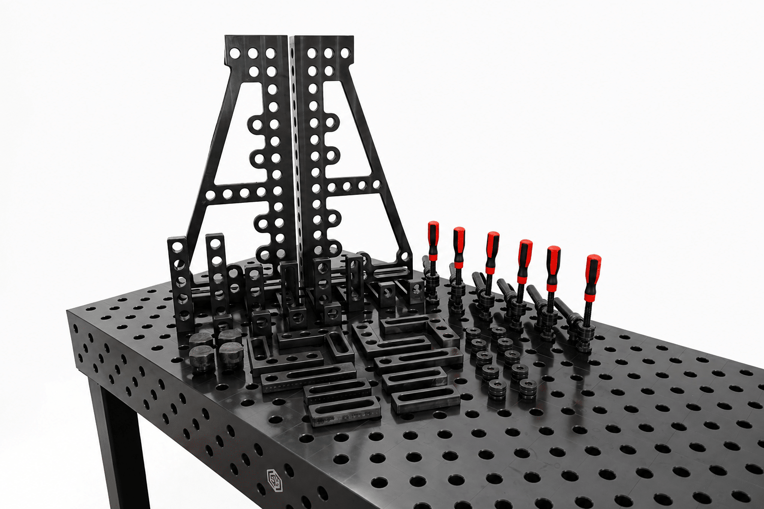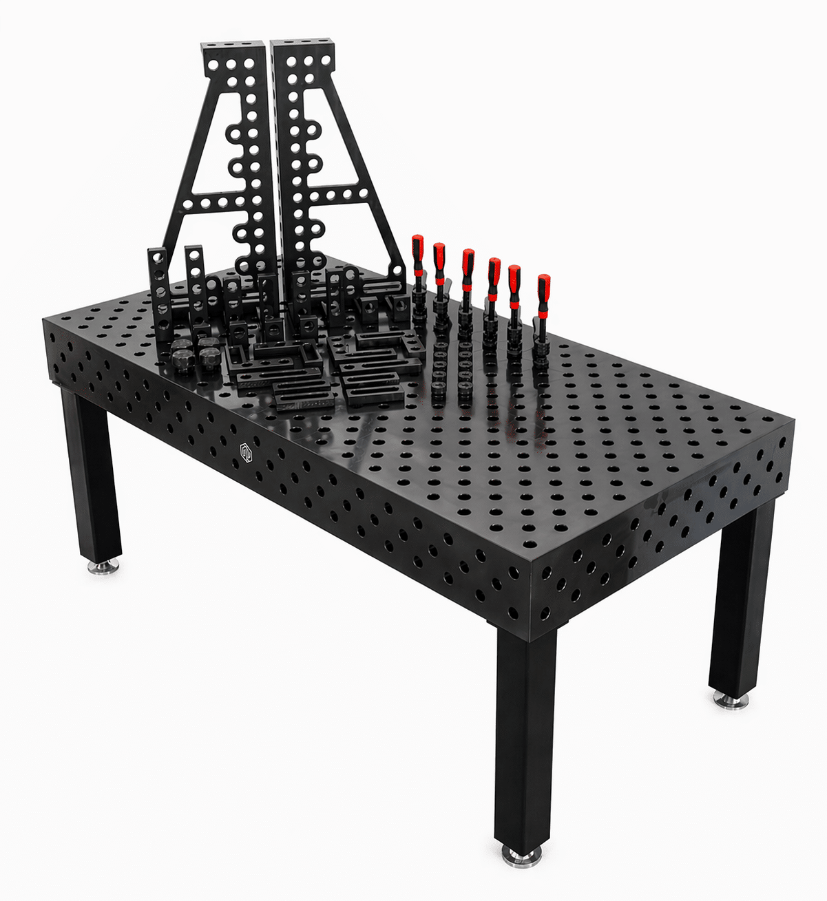 - Langlebige Oberfläche: Die plasmanitrierte Beschichtung erhöht die Härte und Verschleißfestigkeit der Arbeitsfläche, wodurch der Schweißtisch besonders langlebig ist und auch intensiven Einsätzen standhält.